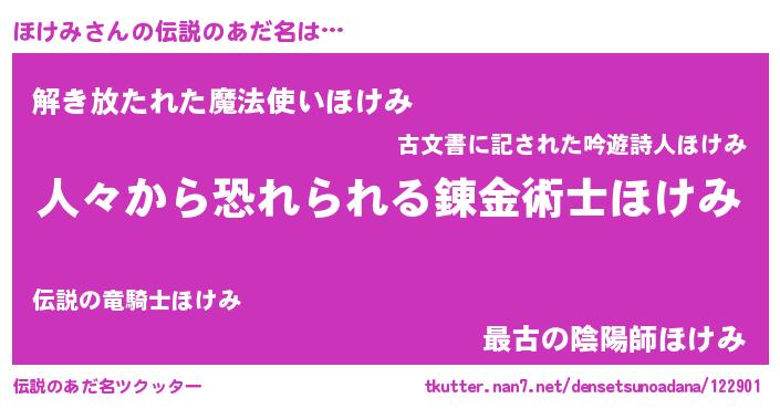 | ヒーロー風カッコイイあだ名 | 『ウルトラ戦士ホケミ』『仮面ホケダー』 |