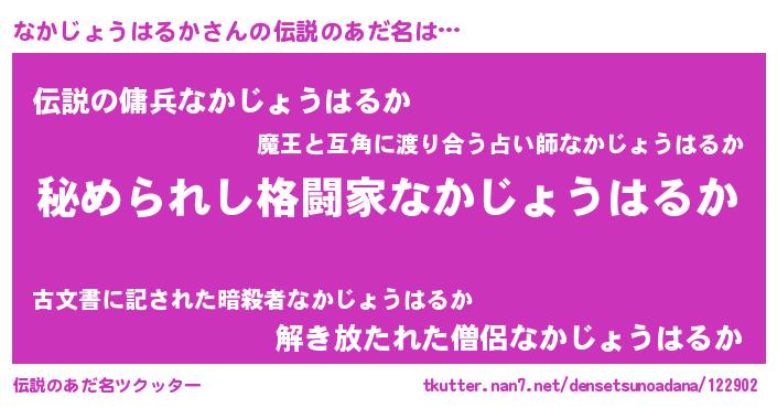 | 意味不明あだ名 | 『なかじょうはるかフォーエバー』 |