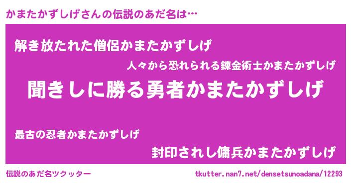 | 意味不明あだ名 | 『永久保存かまたかずしげ』 |