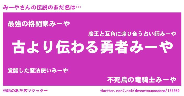 | 意味不明あだ名 | 『永久保存みーや』『みーやフォーエバー』 |