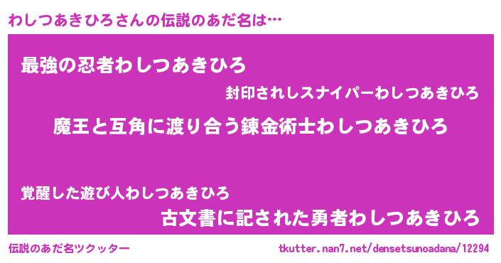 | 意味不明あだ名 | 『自称わしつあきひろ』 |