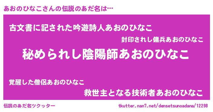 | 意味不明あだ名 | 『あおのひなこフォーエバー』 |