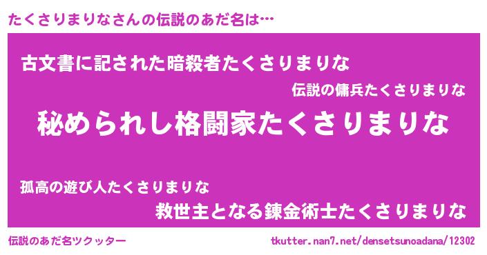 | 女子向けラノベタイトル風あだ名 | 『たくさりまりなの雑貨屋さん』 |