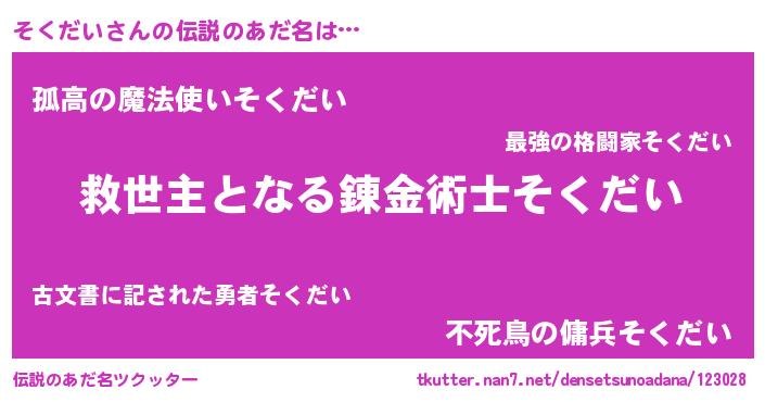 | 胡散臭い通販商品みたいなあだ名 | 『あなたにだけ特別に提供する世界で10本だけ現存している希少なブランデー…その名も「そくだい」』 |