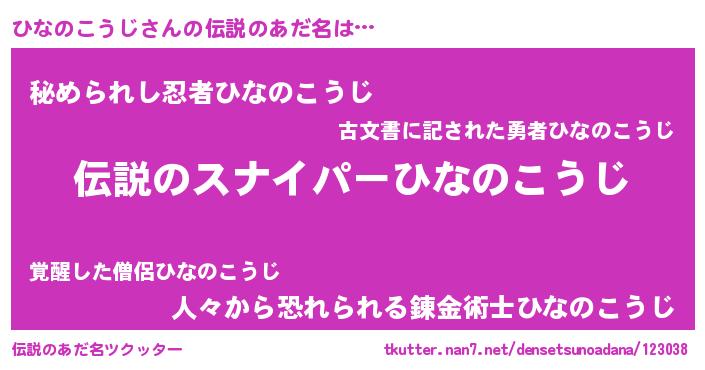 | ヒーロー風カッコイイあだ名 | 『スーパーヒナノコウジ』『仮面ヒナダー』 |