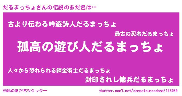| 男性向けラノベタイトル風あだ名 | 『ダンジョンにだるまっちょを求めるのは間違っているだろうか』 |