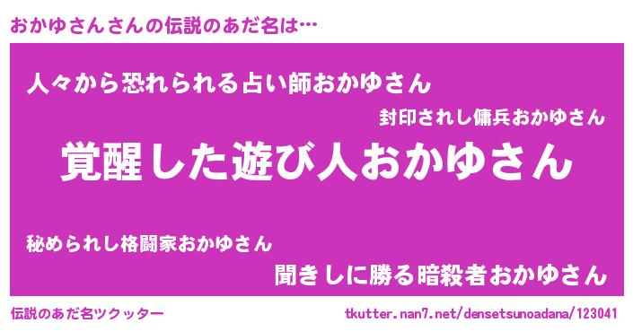 | 意味不明あだ名 | 『とにかく怪しいおかゆさん』 |