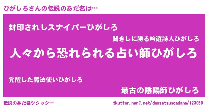 | ヒーロー風カッコイイあだ名 | 『仮面ヒガダー』『慈愛の使者ひがしろ』 |