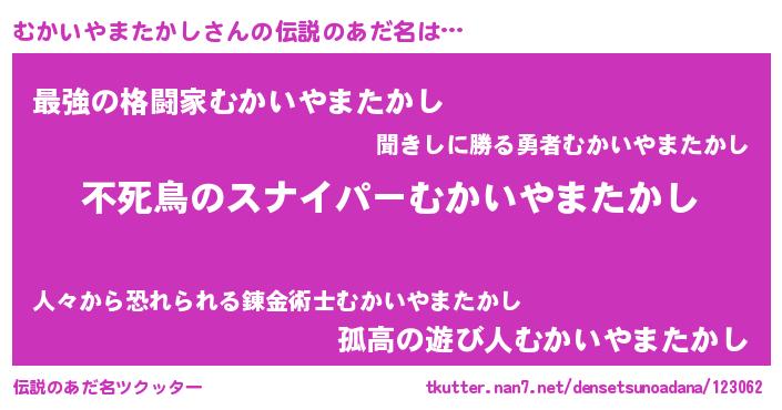 | ヒーロー風カッコイイあだ名 | 『スーパームカイヤマタカシ』 |