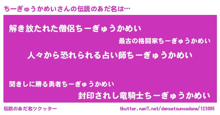 | ヒーロー風カッコイイあだ名 | 『友情の使者ちーぎゅうかめい』 |