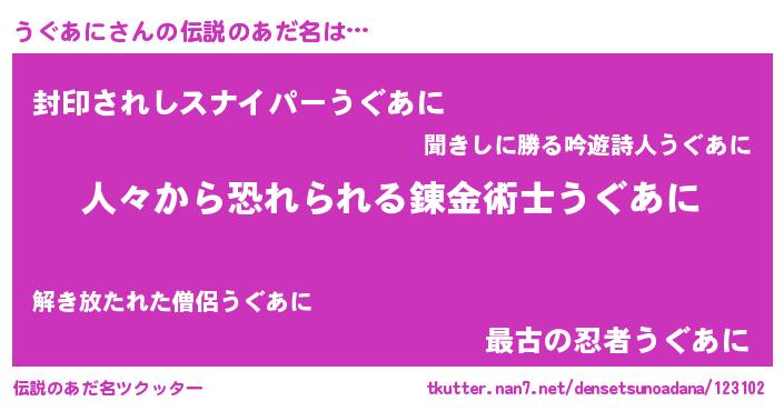 | 欧米人風あだ名 | 『ダニエルうぐあに』『マイケルうぐあに』 |