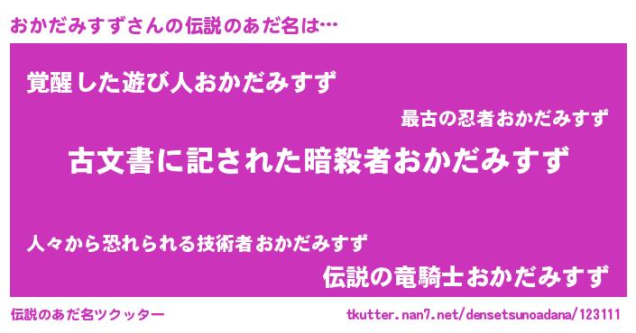 | 女子向けラノベタイトル風あだ名 | 『おかだみすずストレイドッグス』 |