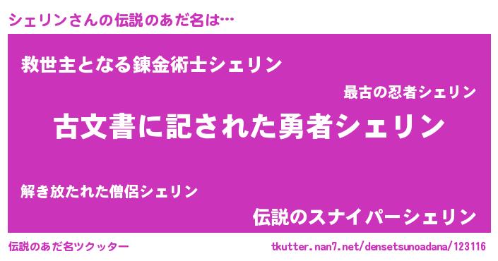 | ヘコむあだ名 | 『シェリン(苦笑)』『シェっふぃ~』 |
