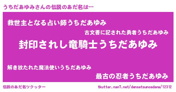 | 意味不明あだ名 | 『住所不定無職うちだあゆみ(11歳)』 |