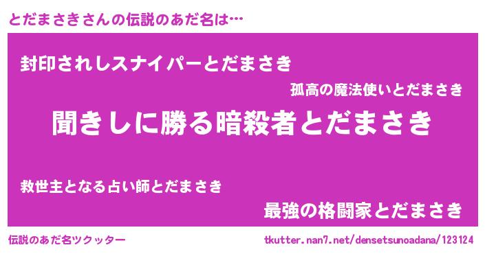 | 胡散臭い通販商品みたいなあだ名 | 『絶対に幸福をもたらす健康食品…その名も「とだまさき」』 |