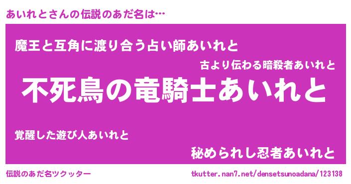 | 男性向けラノベタイトル風あだ名 | 『アイレトアートオンライン』 |