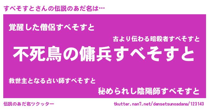 | 男性向けラノベタイトル風あだ名 | 『魔弾の王とすべそすと』 |