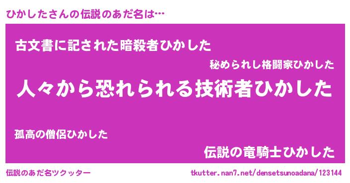 | ヒーロー風カッコイイあだ名 | 『友情の使者ひかした』『ネオヒカシタ』 |