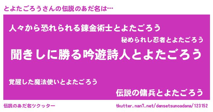| 意味不明あだ名 | 『自称とよたごろう』 |