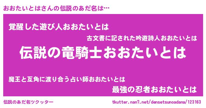 | 男性向けラノベタイトル風あだ名 | 『おおたいとはの憂鬱』 |