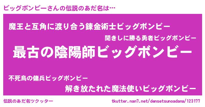 | 意味不明あだ名 | 『住所不定無職ビッグボンビー(91歳)』 |