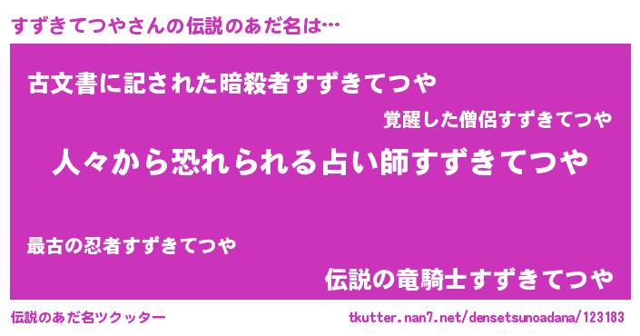 | ヘコむあだ名 | 『すずきてつや(笑)』『すずにゅー』 |
