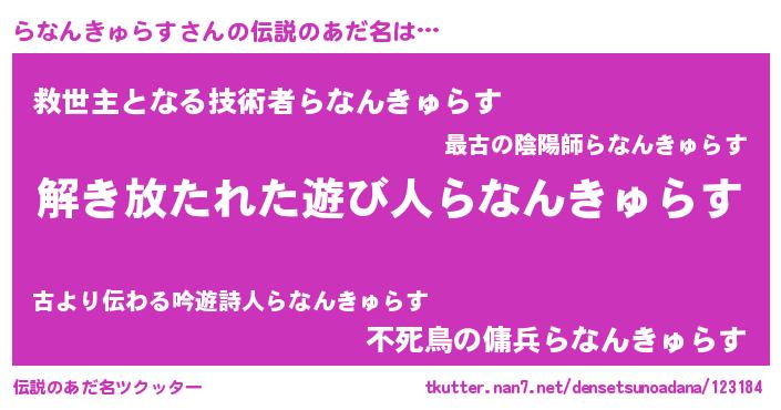 | 意味不明あだ名 | 『自称らなんきゅらす』 |