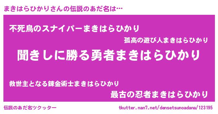 | ヘコむあだ名 | 『まきはらひかり(震え声)』『まきにゅー』 |