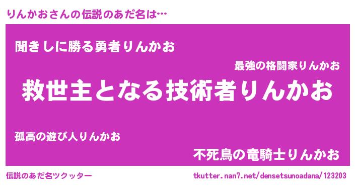 | 胡散臭い通販商品みたいなあだ名 | 『あなたにだけ特別に提供する100年もののヴィンテージワイン…その名も「りんかお」』 |