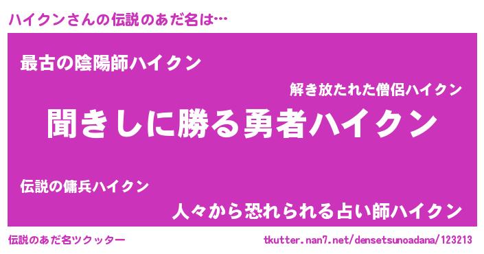 | ヒーロー風カッコイイあだ名 | 『ネオハイクン』『ウルトラハイクンマン』 |