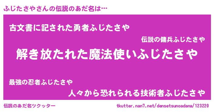 | ヘコむあだ名 | 『ふじを』『ふじたさや(小並感)』 |