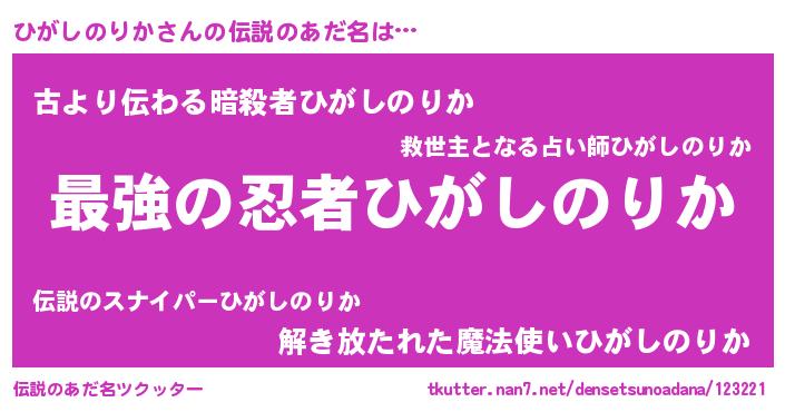 | ファンタジー風あだ名 | 『エターナルヒガシノリカー』 |