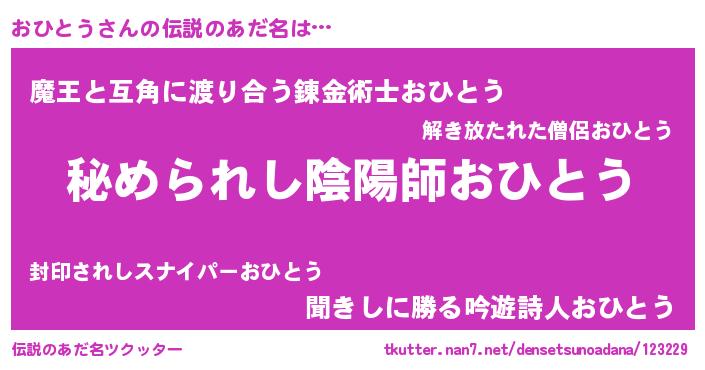| ファンタジー風あだ名 | 『エターナルオヒトウー』『ゼオヒトゥ』 |