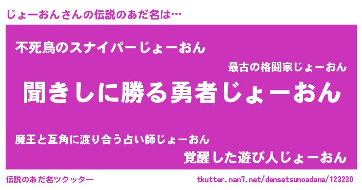 | 男性向けラノベタイトル風あだ名 | 『じょーおんという概念が存在しない退屈な世界 』 |