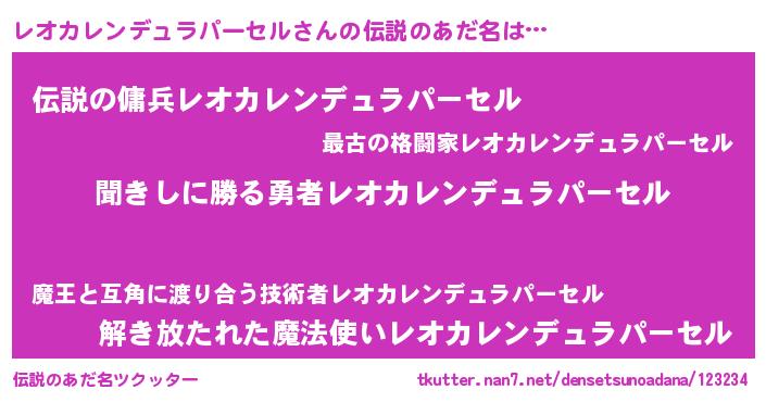 | ヒーロー風カッコイイあだ名 | 『ネオレオカレンデュラパーセル』 |