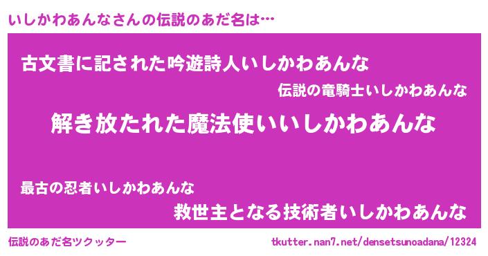 | ヒーロー風カッコイイあだ名 | 『幻影騎士イシ』『ネオイシカワアンナ』 |