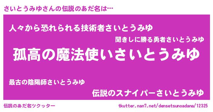 | 肩書あだ名 | 『さいとうみゆ船長』『さいとうみゆ中佐』 |