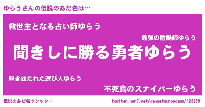 | 意味不明あだ名 | 『永久保存ゆらう』『ヨモギ科ゆらう属』 |