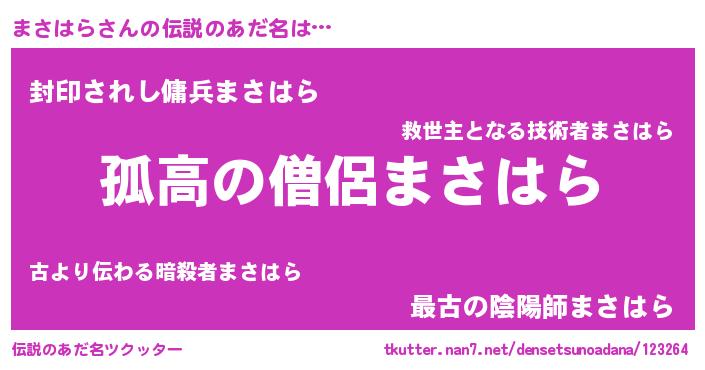 | 意味不明あだ名 | 『とにかく怪しいまさはら』 |