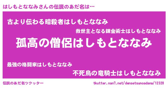 | 意味不明あだ名 | 『とにかく怪しいはしもとななみ』 |