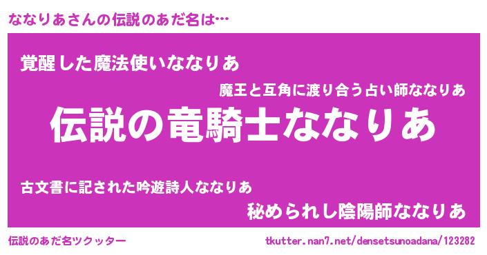 | 意味不明あだ名 | 『住所不定無職ななりあ(11歳)』 |