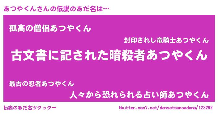 | ヒーロー風カッコイイあだ名 | 『仮面アツダー』『ネオアツヤクン』 |