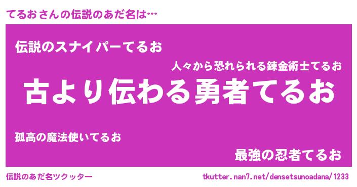 | 意味不明あだ名 | 『永久保存てるお』『ペロリンてるお』 |