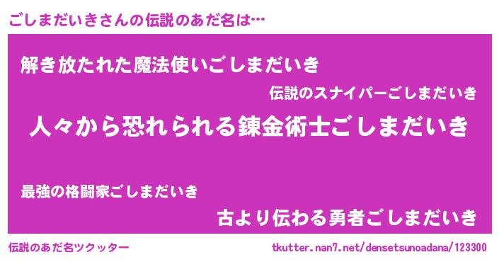 | ヒーロー風カッコイイあだ名 | 『友情の使者ごしまだいき』 |