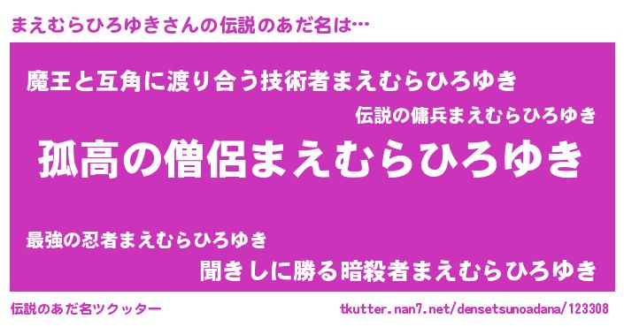 | ヘコむあだ名 | 『まえっ子』『まえむらひろゆき(苦笑)』 |