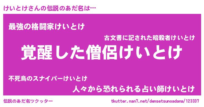 | 意味不明あだ名 | 『とにかく怪しいけいとけ』 |