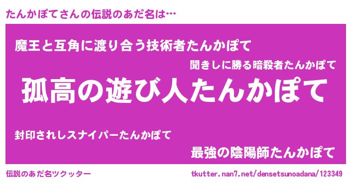 | 女子向けラノベタイトル風あだ名 | 『たんかぽては平凡を望む』 |