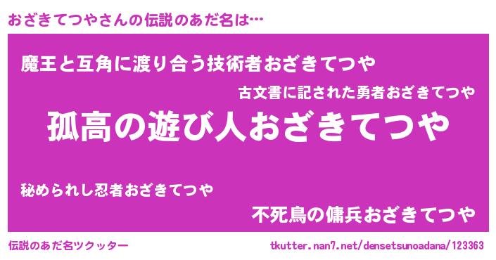 | 意味不明あだ名 | 『とにかく怪しいおざきてつや』 |