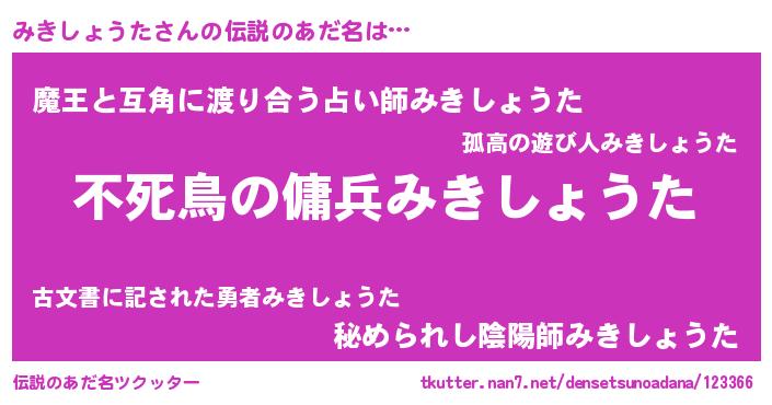 | 意味不明あだ名 | 『たけのこ科みきしょうた属』 |