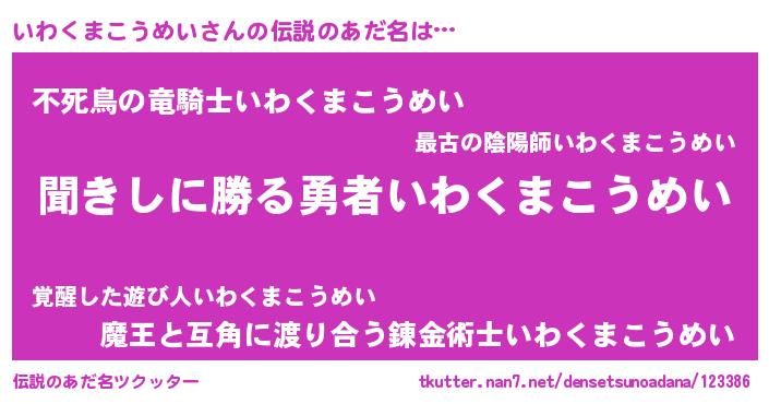 | ヘコむあだ名 | 『いわくまこうめい(苦笑)』『いわにー』 |